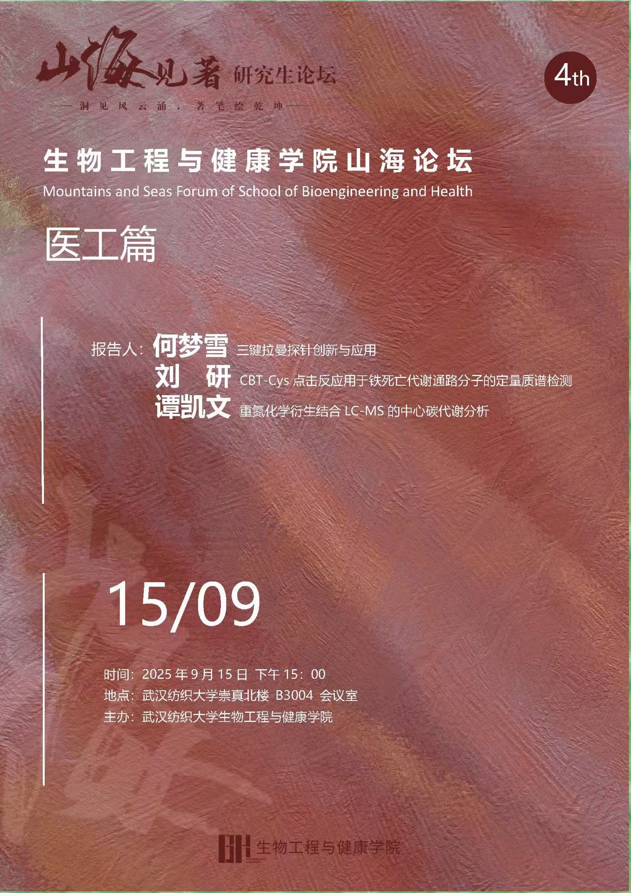 9月15日下午,2138cn太阳集团城研究生论坛在崇真北楼B3004会议室顺利召开。何梦雪、刘研、谭凯文三位研究生围绕生物检测与分析技术,以各自研究方向落脚,带来了他们的成果分享。