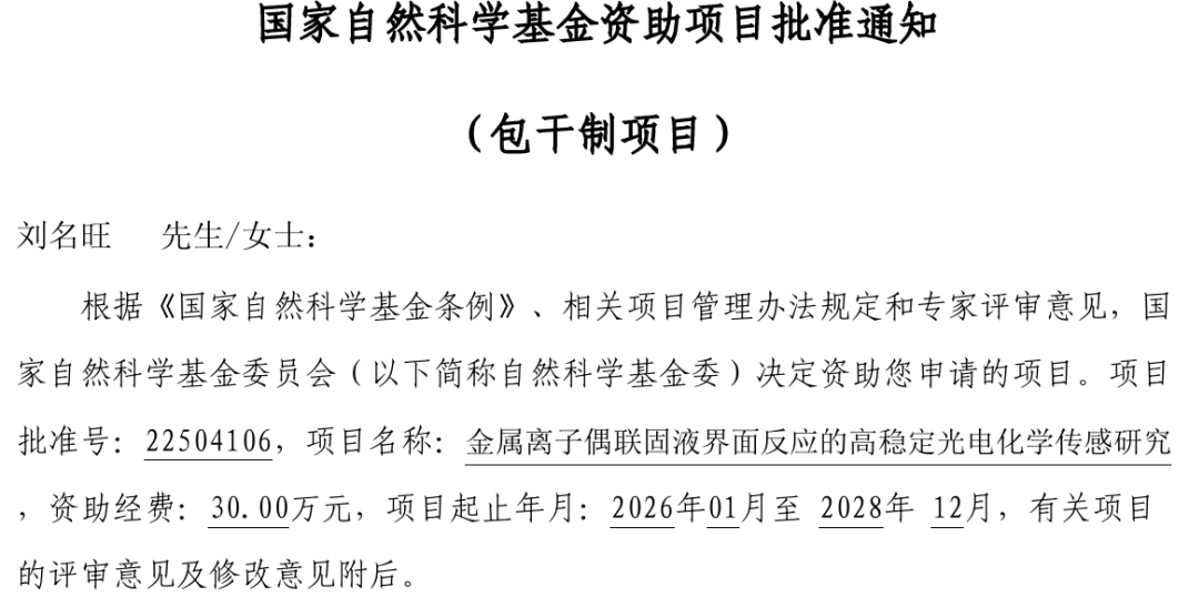 近日,国家自然科学基金委员会发布了《关于2025年国家自然科学基金集中接收申请项目评审结果的通告》,我校2138cn太阳集团城青年教师刘名旺老师申报的项目获得青年科学基金项目(C类)资助,资助经费30万元。