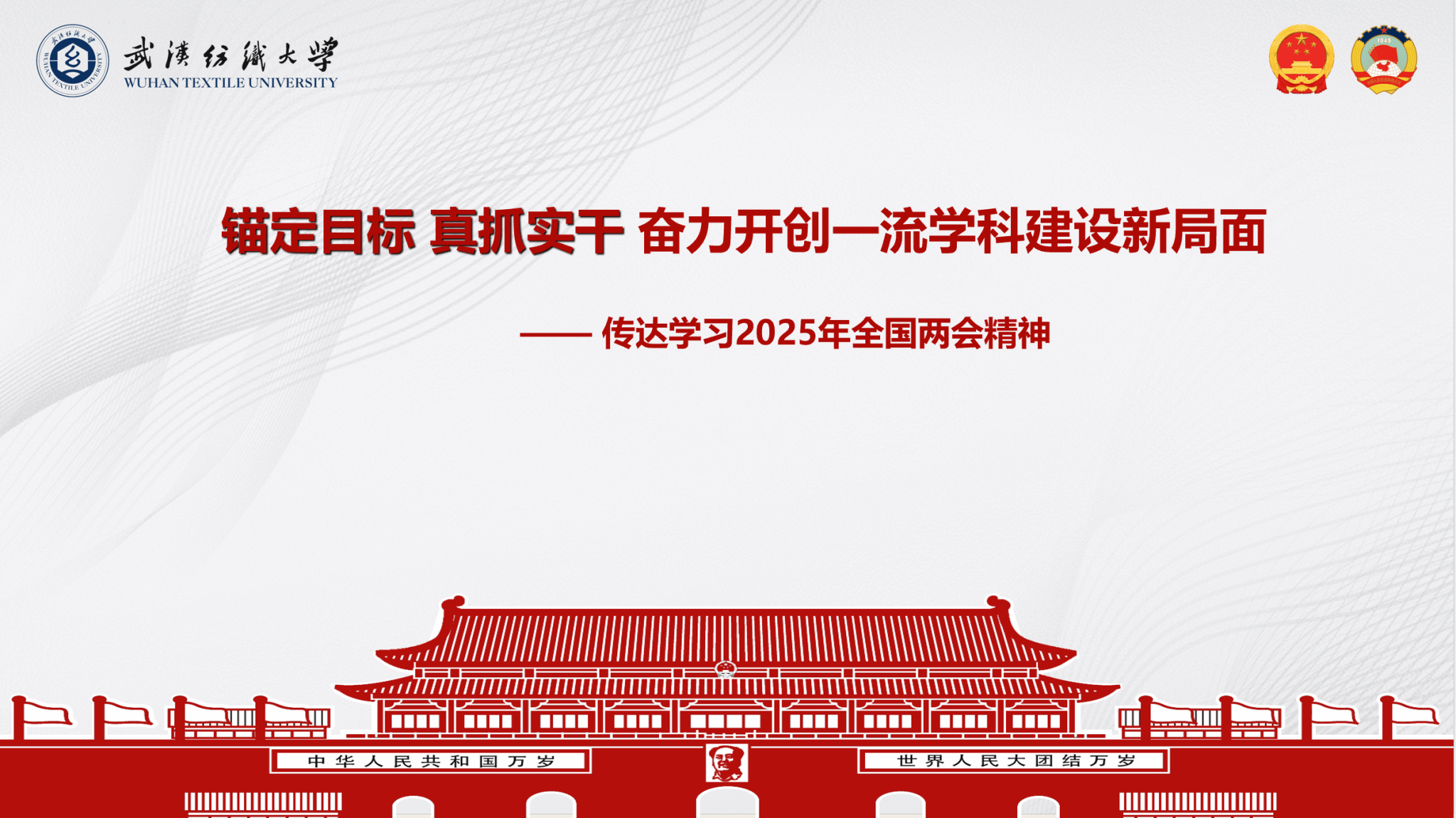 理论专题学习阶段,李楠书记传达学习学校关于贯彻2025年全国两会精神,全国人大代表、中国工程院院士、校长徐卫林的《锚定目标 真抓实干 奋力开创一流学科建设新局面》专题辅导报告。报告指出,2025全国两会以“笃信”凝聚共识,以“笃定”锚定方向,以“笃行”落实蓝图,全面传递稳预期、强信心的施政强音,体现了“积厚成势”的发展底气,体现了“进一步全面深化改革”的战略定力,体现了“实干兴邦”的务实行动。报告中,徐卫林同志作为全国人大代表在履职工作中提交了5项建议议案,重点关注智能纺织材料、人工血管及血管替代物、国家科技奖励评审机制、免试攻读研究生、高校产业兼职教师等方面。