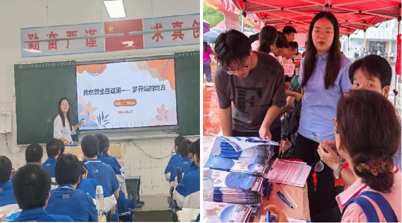 6月26日,吴老师、肖老师在松滋市松滋二中开展招生宣传。