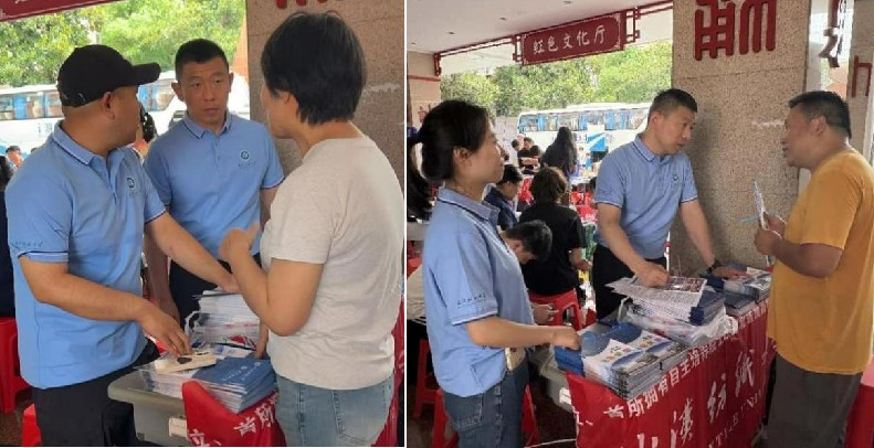 6月27日,吴老师、肖老师在公安县,车胤中学开展招生宣传。
