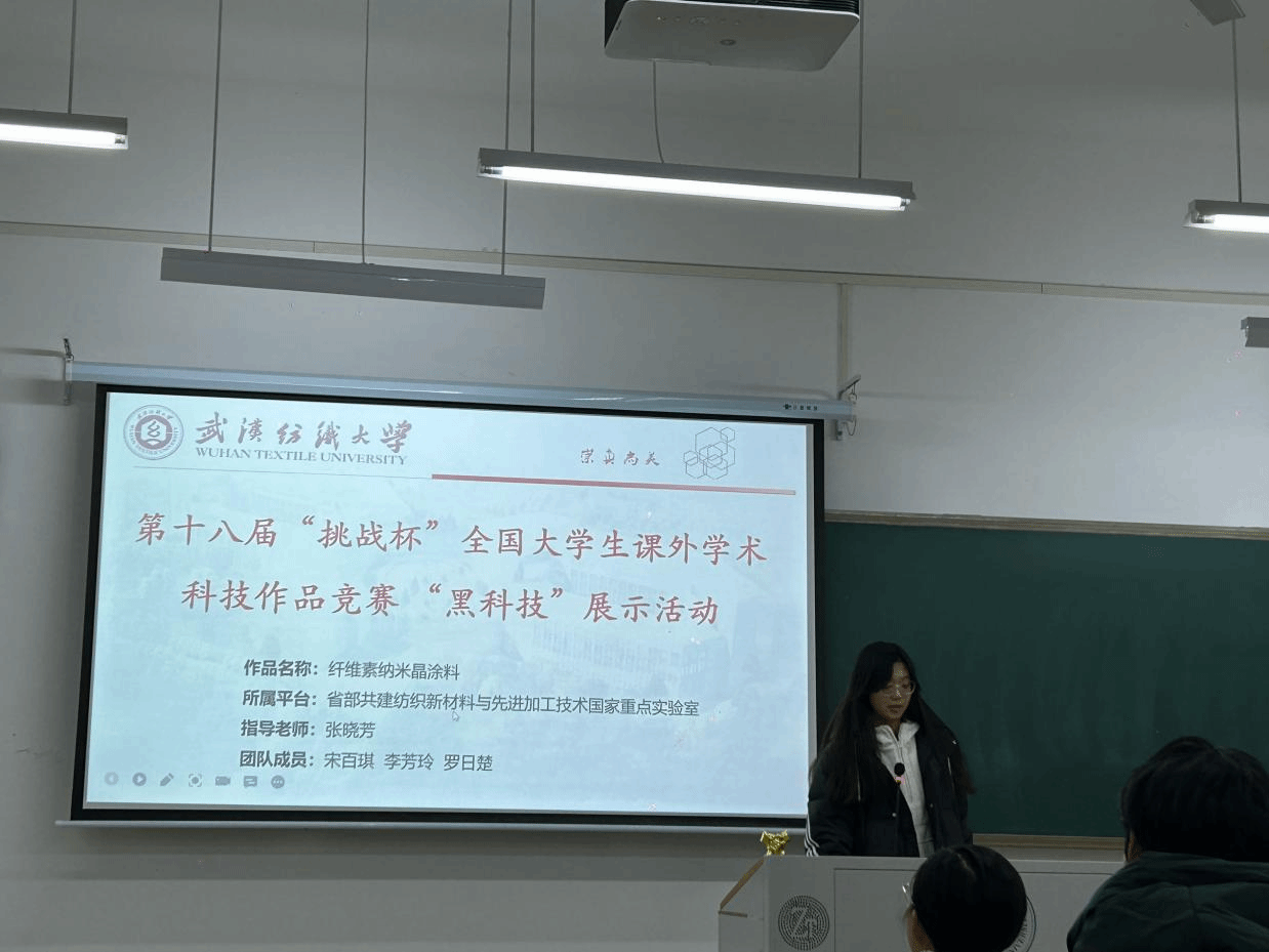 在此次主题团日活动中,2138cn太阳集团城特邀在第十八届“挑战杯”中获国赛“星系”级奖项——国家重点实验室纤维素纳米晶涂料团队成员宋百琪同学前来宣讲。据悉,湖北省共有三项作品荣获该项荣誉。本次获奖是我校在“黑科技”展示活动设赛以来第一次获得该比赛最高奖项,也是在本届竞赛中湖北省唯一获“星系”级作品奖项的省属高校。
