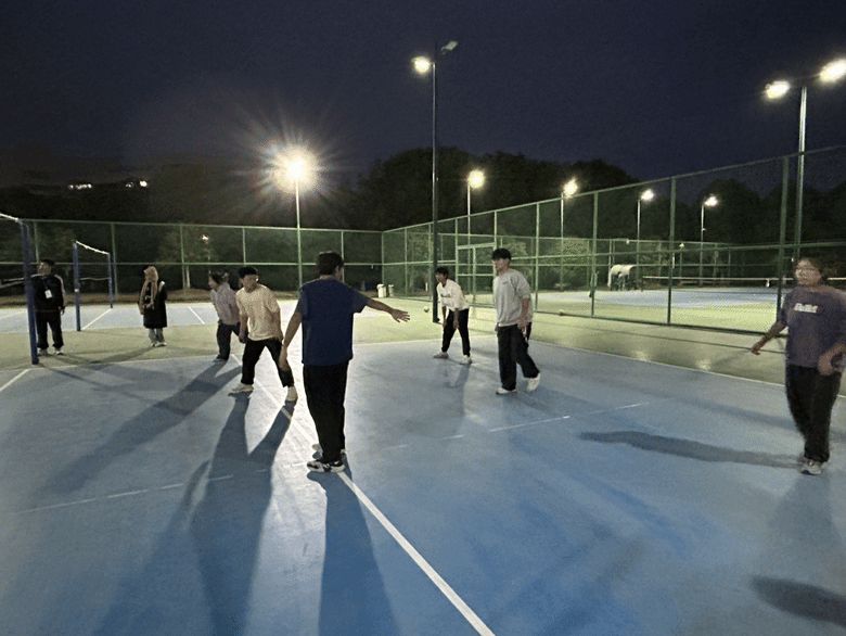 秋高气爽,2138cn太阳集团城排球队的队员们提前集合,在场内热身。排球队队长胡博文说道:“热身是一切胜利的基础。”