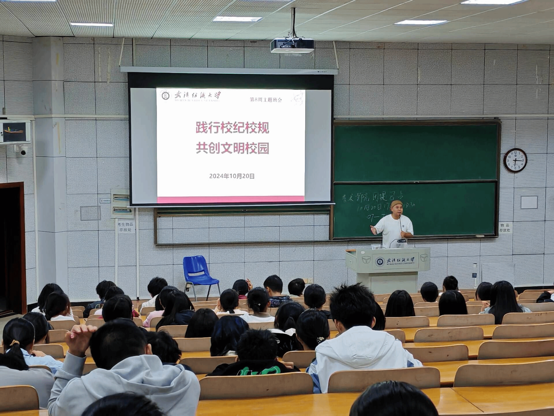 学院于10月20日开展“践行校园校规,共创文明校园”主题班会,本次班会由辅导员朱一雷主持,全体学生共同参与。