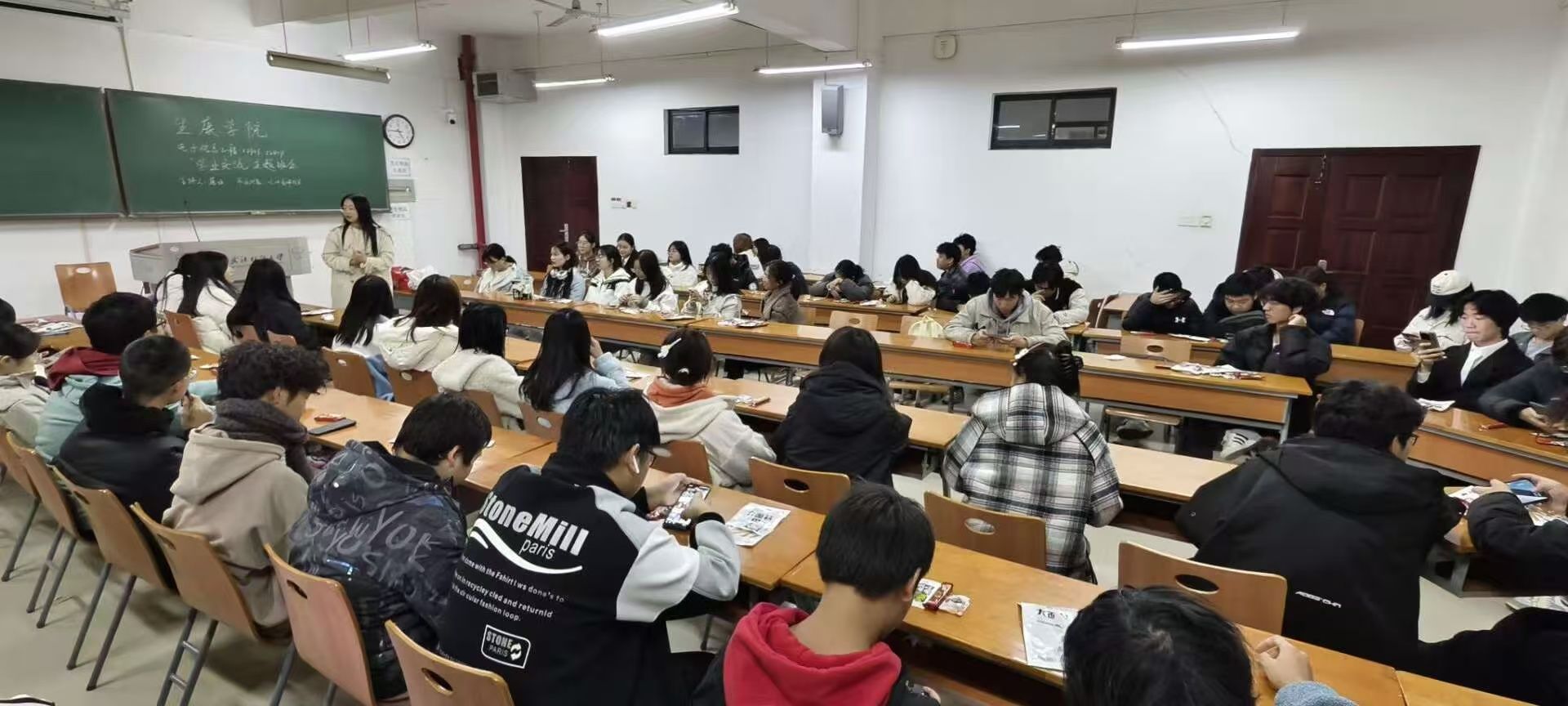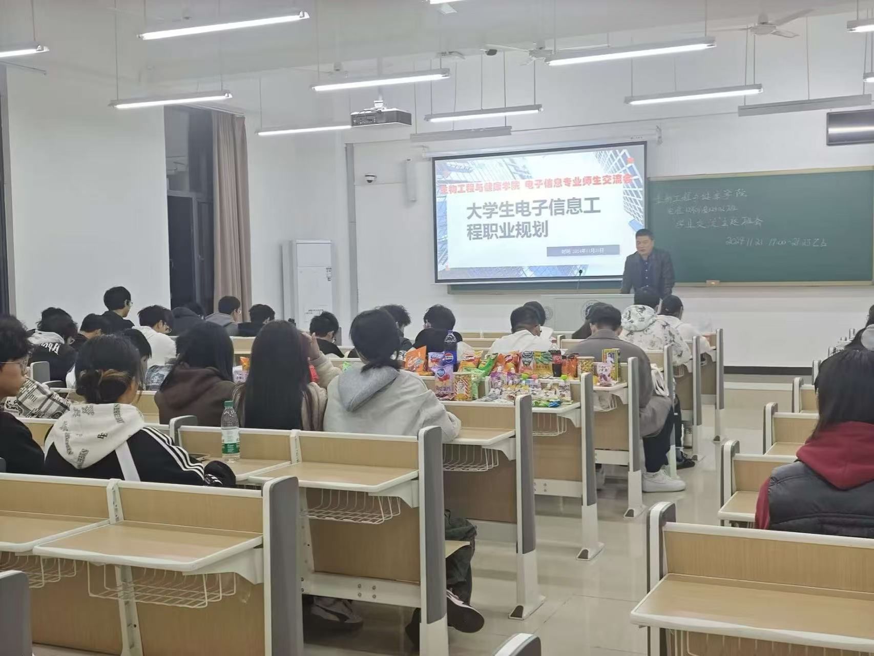 11月17日,班主任王俊杰老师率先开启职业规划话题,凭借多年的行业经验,为同学们详细分析了本专业的就业走向,举例说明不同岗位所需的技能与素养,引导同学们自我审视、发掘优势,初步拟定职业路径。随后的学业交流环节,王老师针对同学们在专业课程学习中的困惑,分享了学习技巧与资源利用方法,鼓励大家积极参与学术讨论。
