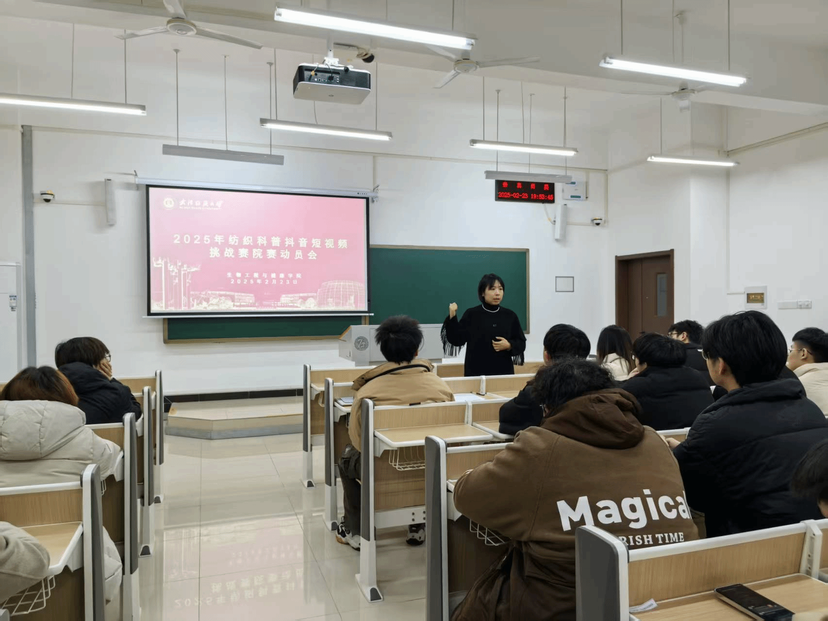 学院副书记刘奕针对“2025年纺织科普抖音短视频挑战赛”院赛进行动员。她整体介绍了本次大赛的注意事项,并强调了此次大赛对于学院学生发展的重要性,希望同学们积极参与比赛,以此比赛展示生康学子的风采。这次动员大会不仅给了生康学子一个展示自我的机会,也让生康学子们斗志昂扬,在新的学期中,挥洒青春,泼墨激昂。