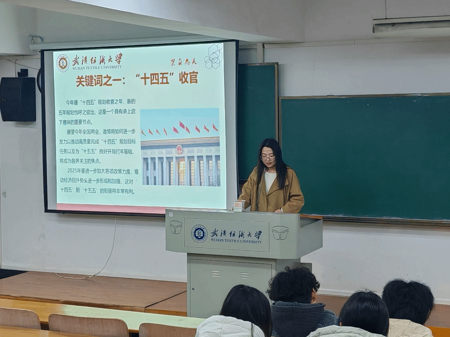 唐云则介绍了徐卫林院士参会的情况。3 月 6 日上午,在十四届全国人大三次会议湖北代表团全体会议上,徐卫林院士以 “赋能纺织产业转型与高质量发展” 为主旨发言。他强调求真务实的科研态度,聚焦科技前沿推动纺织产业升级。徐卫林院士说到“纺织产业将是大健康产业”,不仅彰显了学校在科研与行业发展中的重要地位,,更为生康学院的同学们照亮了前行道路,让大家真切认识到所学专业与纺织产业紧密相连的广阔前景。