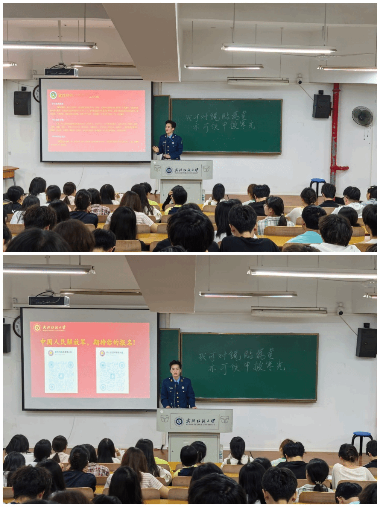 为积极响应国家征兵号召,激发青年学子参军报国热情,生康学院于5月11日在7-T201组织召开“热血青春志在军营 人生辉煌矢志报国”主题班会暨2025年秋季征兵宣传“三个一”活动宣讲会。本次班会由各班班主任、辅导员主持,学院全体学生共同参与活动,共话家国情怀,共筑强军梦想。