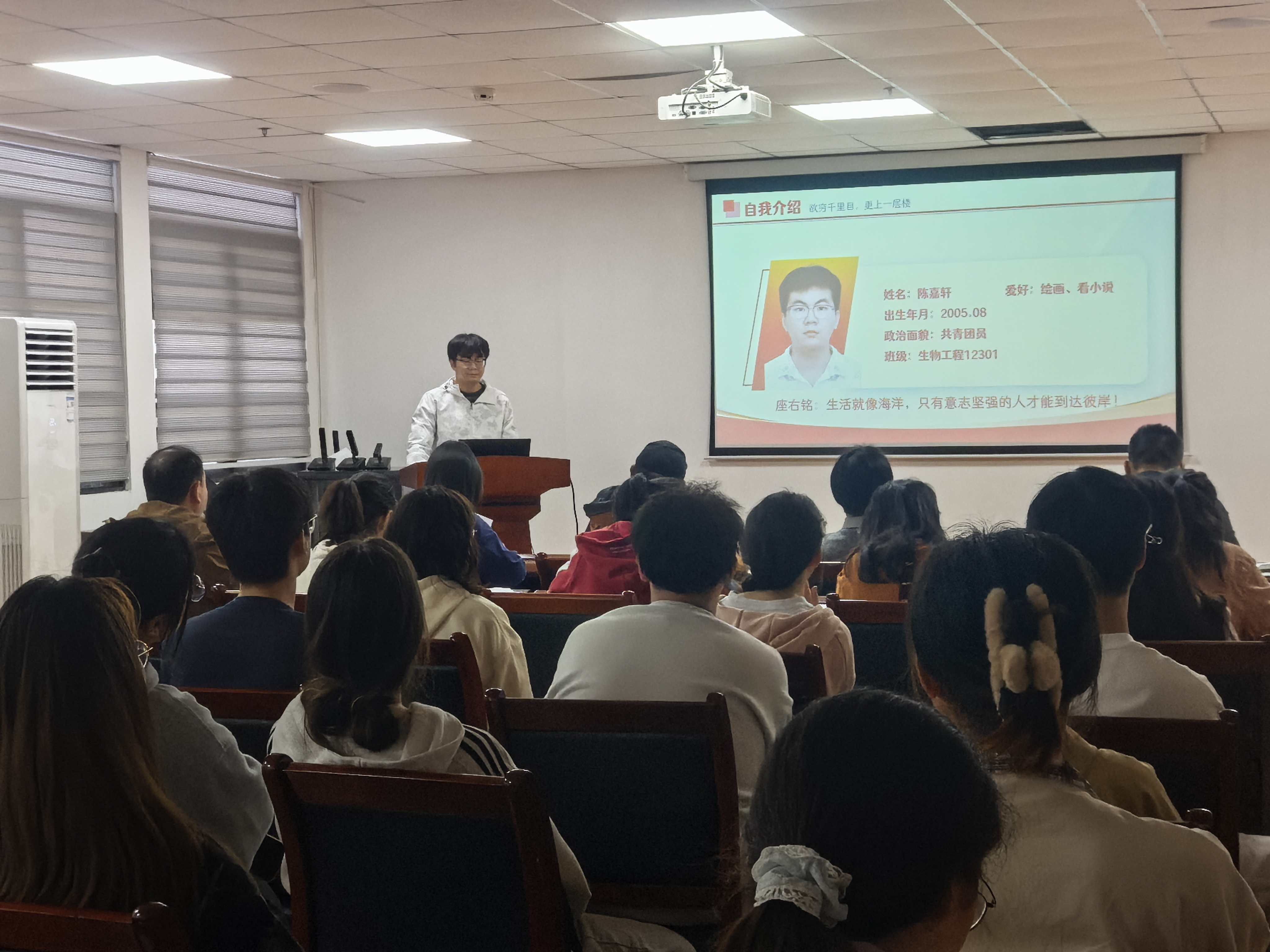 近日,生康学院举办“朋辈领航”优秀学生分享会,国家奖学金获得者、生物工程12301班陈嘉轩同学以“博学慎思,明辨笃行”为主题,向2024级新生分享其成长经验与学术心得。作为学院学生会执行主席、多项竞赛奖项与科研成果的获得者,陈嘉轩以扎实的学业基础、丰富的实践经历和深刻的自我反思,展现了新时代青年学子的卓越风采。