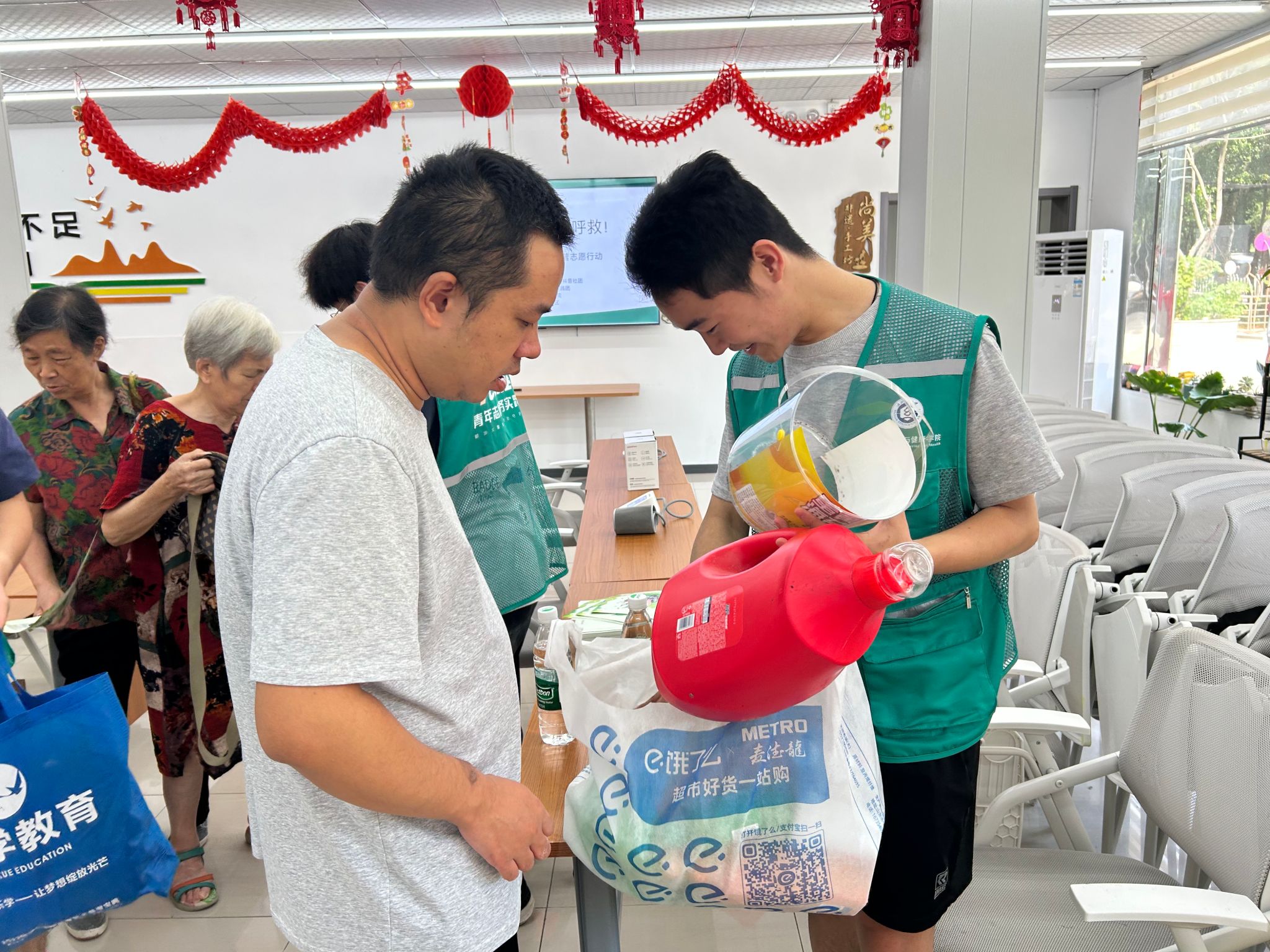 “3袋塑料瓶换1提纸巾,再加2个矿泉水瓶能换牙膏!” 纺大社区活动室里,一场“塑料焕新”狂欢热闹开场。作为实践基地首秀,“塑料制品限时兑换”活动以趣味形式撬动环保实践:物资区陈列着待兑换的日用品,回收区堆起居民拎来的“宝藏袋”,健康区里志愿者忙着测血压、讲微塑料危害。家住8栋的余阿姨笑称:“攒的瓶子不再是‘垃圾’,换来的都是‘刚需’!” 近百公斤塑料废弃物在此“重生”,80余件日用品完成“绿色流转”,让“变废为宝”从理念落地为社区日常。