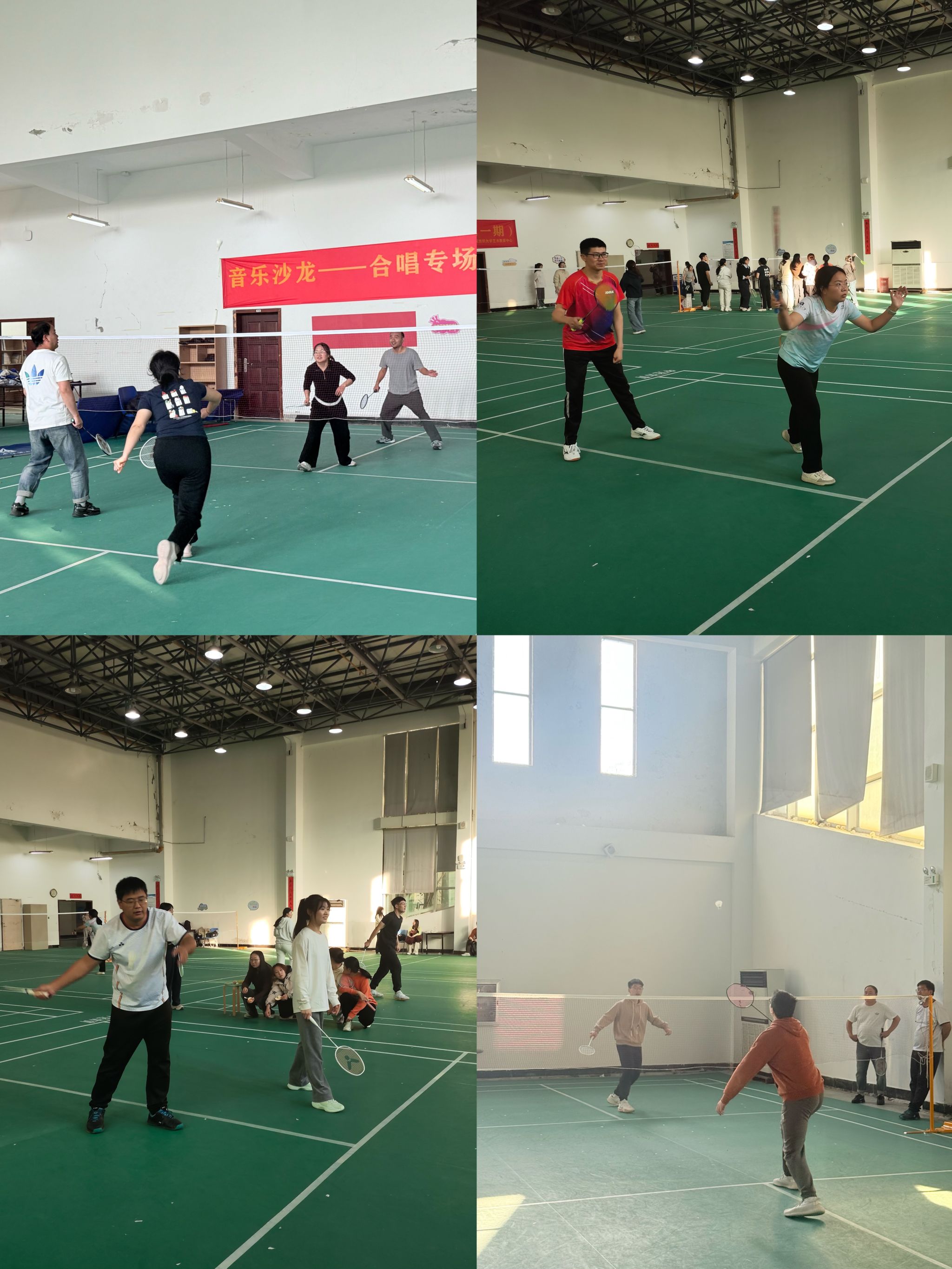比赛现场气氛热烈,活力四射。平日里严谨治学的老师们和勤奋钻研的学子们纷纷换上运动装,化身活力四射的运动员,在球场上挥洒汗水,切磋技艺。轻盈的羽毛球在空中来回飞舞,划出一道道优美的弧线,精准的扣杀、巧妙的吊球、奋力的扑救……每一个精彩瞬间都引得现场观众阵阵喝彩。比赛不仅是对技术的考验,更是智慧与体能的较量,师生们在竞技中默契配合,在协作中深化情谊。