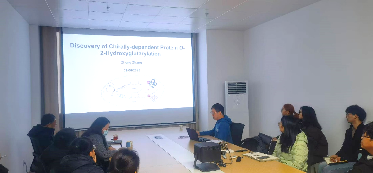 随后,张铮博士将进行一场内容前沿、逻辑清晰的学术报告。首先,他系统阐述化学蛋白质组学技术在发现低丰度、新型蛋白质修饰中的策略与方法,重点介绍其团队如何通过聚合物金属亲和富集技术与顺序酶切策略,突破D-2-羟基戊二酸修饰肽段的检测瓶颈。接着,他深入分享其在IDH突变肿瘤模型中发现的D2HG与L2HG手性依赖性蛋白修饰现象,揭示代谢物通过共价修饰调控激酶活性的新机制,并结合结构模拟阐释其分子基础。最后,张铮博士探讨该发现对理解肿瘤代谢重编程与蛋白质功能调控的启示,并展望化学蛋白质组学在疾病标志物发现、靶向治疗开发等方向的潜在应用。他也表示,期待与我校师生在蛋白质修饰分析、代谢与信号交叉研究等领域开展学术交流与合作,共同推动相关学科发展。
