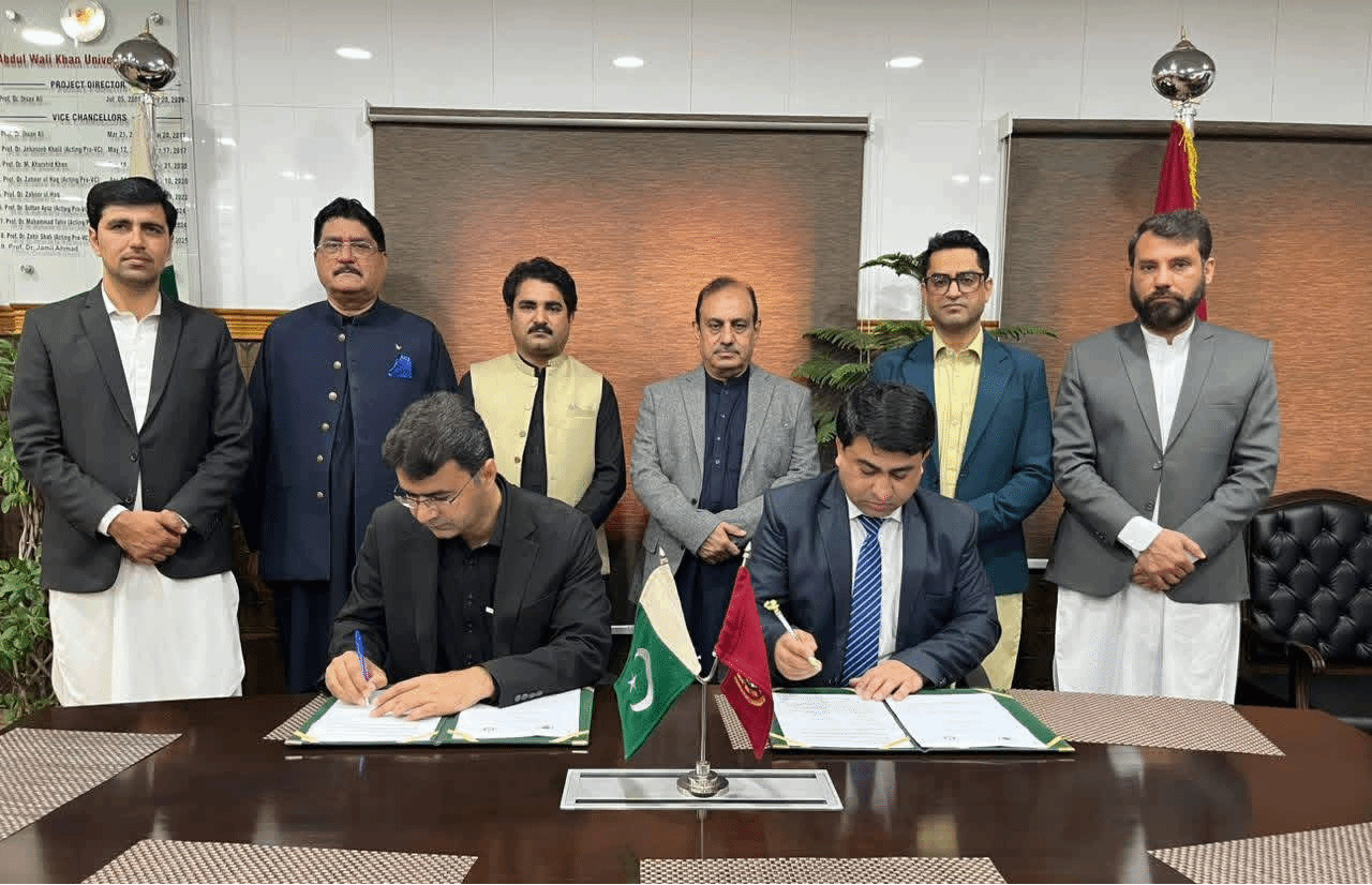 (2026年2月13日)在阿卜杜勒・瓦利・汗大学马尔丹分校合作备忘录签署仪式上,瓦吉德・侯赛因博士与谢尔・巴哈杜尔(Sher Bahadar)教授共同签署协议,该校校长贾米尔・艾哈迈德(Jameel Ahmad)教授、创新与商业化中心主任塔里克・马哈茂德(Tariq Mehmood)博士、萨吉德・阿里(Sajid Ali)博士等共同见证,双方机构合作与学术伙伴关系进一步深化。